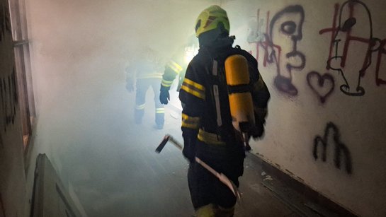 Jeder Trupp meldete seine einzelnen Arbeitsschritte per Funk an die Übungsleitung. Dies ermöglichte eine koordinierte Steuerung des Übungsablaufs und trug dazu bei, das Übungsziel zu erreichen: eine realistische Einsatzsimulation mit möglichst vollständigem Verbrauch des mitgeführten Atemluftvorrats.