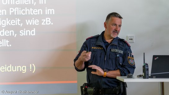 Unter der Leitung von und Gruppeninspektor Christian Mayerhofer und Revierinspektor Martin Lechner von der Polizei erhielten die Teilnehmer\innen eine fundierte theoretische Ausbildung. Dabei wurden die gesetzlichen Grundlagen der Verkehrsregelung anhand zahlreicher praxisnaher Beispiele verständlich vermittelt.